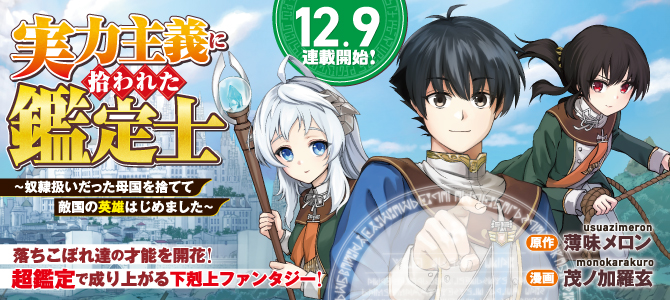実力主義に拾われた鑑定士~奴隷扱いだった母国を捨てて、敵国の英雄はじめました~, Jitsuryoku Shugi ni Hirowareta Kanteishi, 実力主義に拾われた鑑定士, 実力主義に拾われた鑑定士~奴隷扱いだった母国を捨てて、敵国の英雄はじめました~