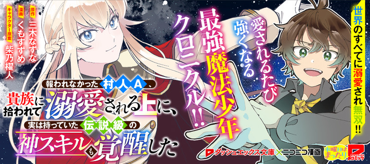 Alternative Titles 報われなかった村人A、貴族に拾われて溺愛される上に、実は持っていた伝説級の神スキルも覚醒した , The Villager Who Was Abandoned, Was Picked Up By An Aristocrat And Awakened A Legendary Divine Skill (manga)